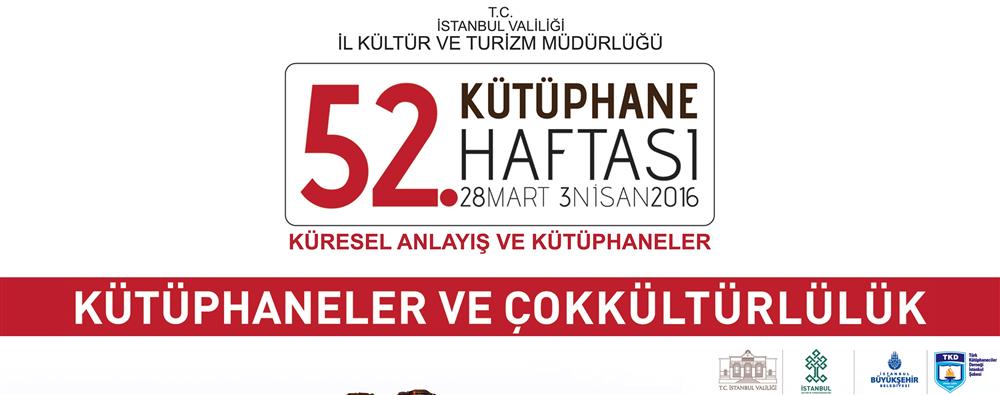 Bu yıl 28 Mart – 03 Nisan 2015 tarihleri arasında kutlanacak olan Kütüphane Haftası’nın ana teması “Kütüphanelerin Uluslararası Kültürel Anlayışın Gelişmesine Katkıları” ve İstanbul teması “Kütüphaneler ve Çokkültürlülük” olarak belirlenmiştir. Kutlama programı kapsamında; İstanbul’daki kütüphaneci ve bilgi yöneticilerinin yanı sıra, çocuk ve gençlerden yaşlılara yönelik birçok etkinlik ve buluşma gerçekleştirilecektir. Kütüphane Haftası Kutlama Programı aracılığı ile konferanslar, atölyeler, yazar söyleşileri ve daha fazlası kütüphane ve bilgi kurumlarında siz katılımcılarını bekliyor.