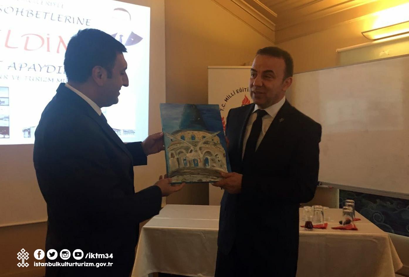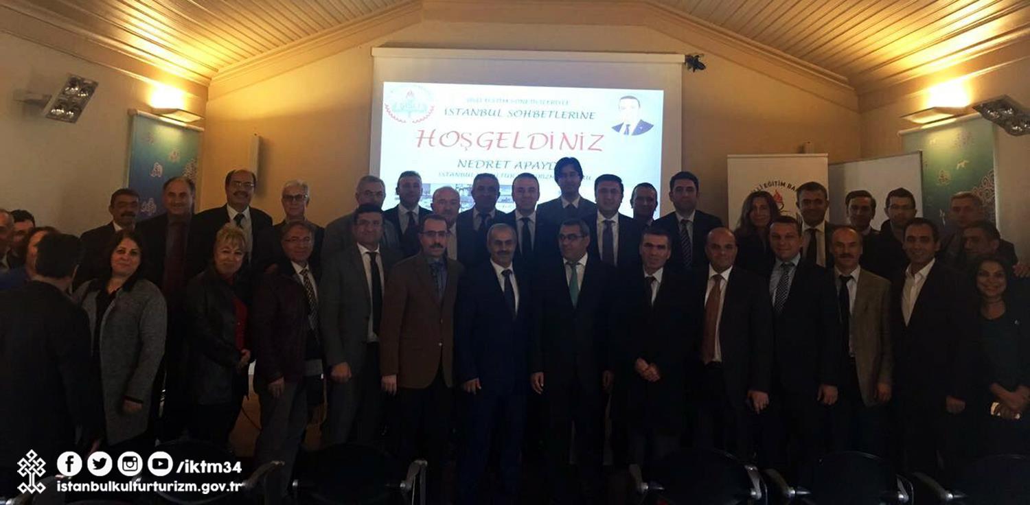 İl MüdürüNedret APAYDIN Şişli Milli Eğitim Müdürü Murat Mücahit Yentür başkanlığında okul müdürlerine İstanbulu tanıyor musunuz konulu sohbet gerçekleştirdi.